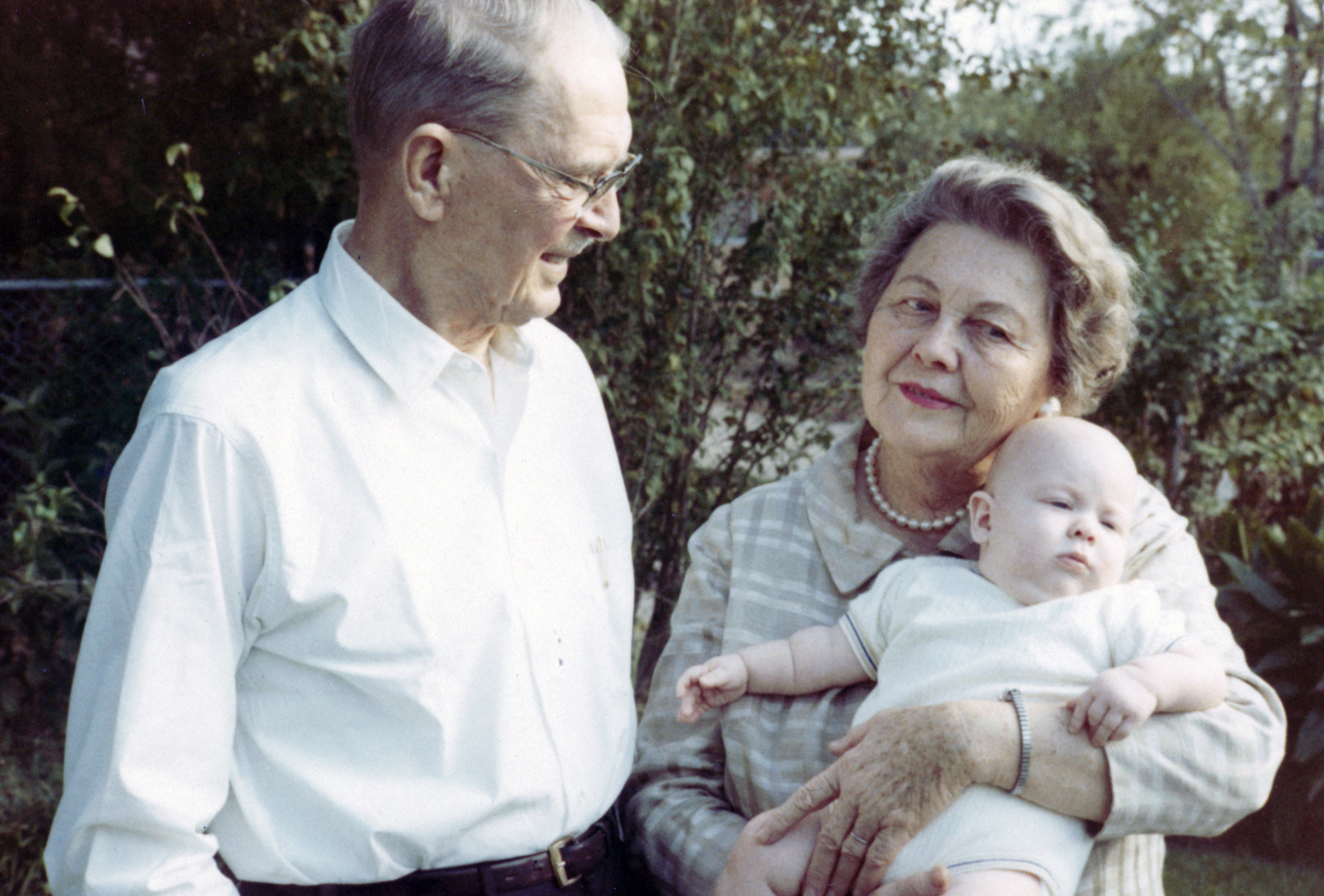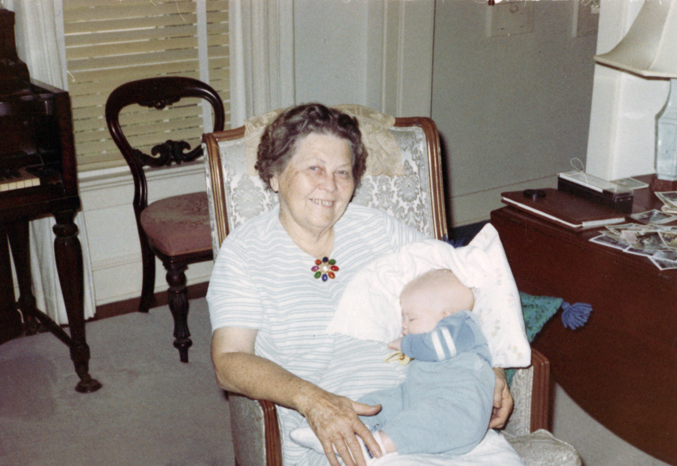 Hubert Lewis Bray (born 1970) being held by his grandmother.